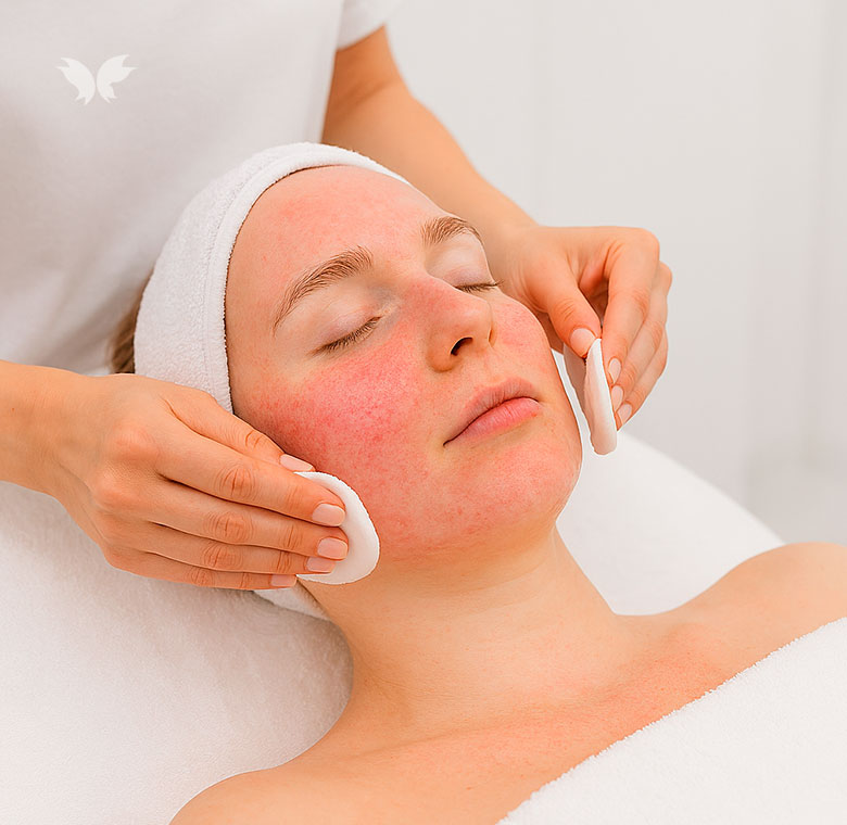 Protocolo delicado para pieles sensibles o con rosácea que buscan disminuir enrojecimiento y mejorar textura sin irritación. Incluye productos hipoalergénicos, peeling ultrasónico, esferas frías y mascarillas calmantes. Restaura la barrera cutánea, reduce inflamación y proporciona una sensación inmediata de alivio y confort.